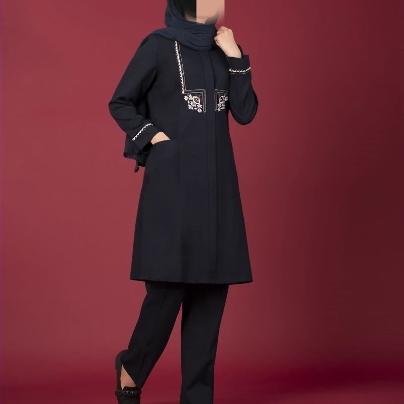مانتو شلوار اداری سایز بزرگ تا سایز 50 قد مانتو 105~100 جنس مانتو شلوار سوپر مانیا و جنس عالییی داره پست شلوار مقداری کش کار شده برای سهولت در استفاده ی بهتر محصول مدل با گلدوزی و با کیفیت بالا سایز:40/42/44/46/48/50