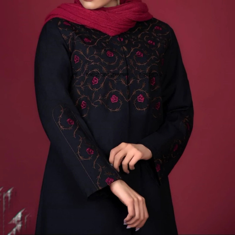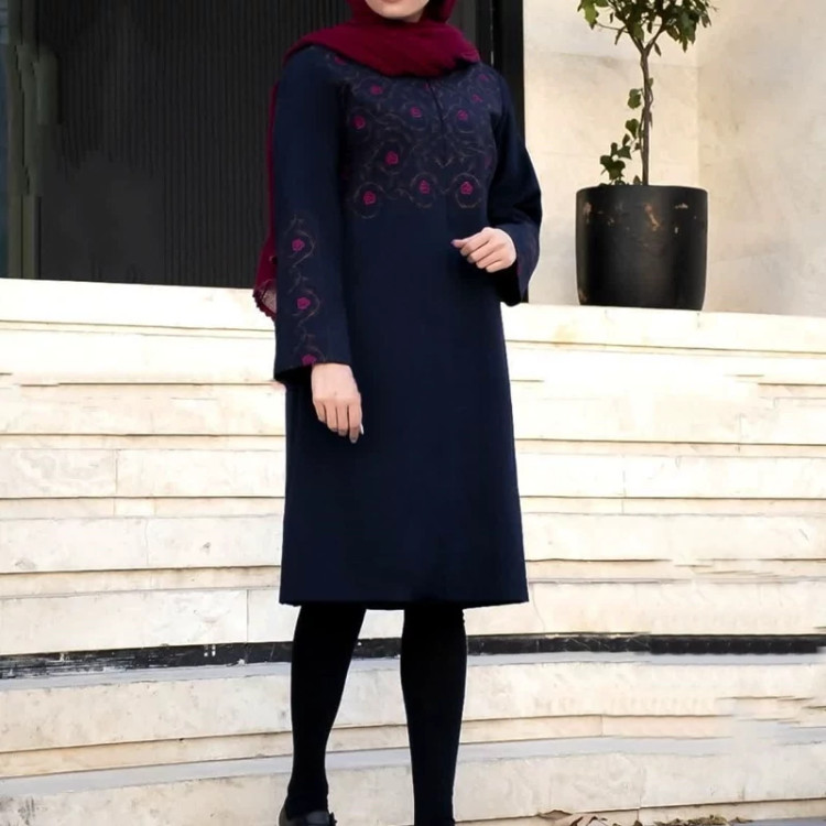 مانتو قواره دار گلدوزی شده و دکمه دار (ارسال رایگان)