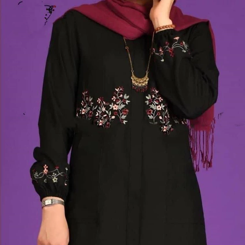 مانتو زنانه دو رنگ مشکی و مرجانی