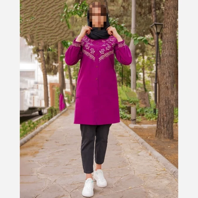 مانتو مجلسی گلدوزی شده شیک و زیبا جنس لنین بدون پرزدهی،بدون ابرفت،بدون رنگدهی سایزهای38/40/42/44/46 رنگ پرتقالی و بنفش